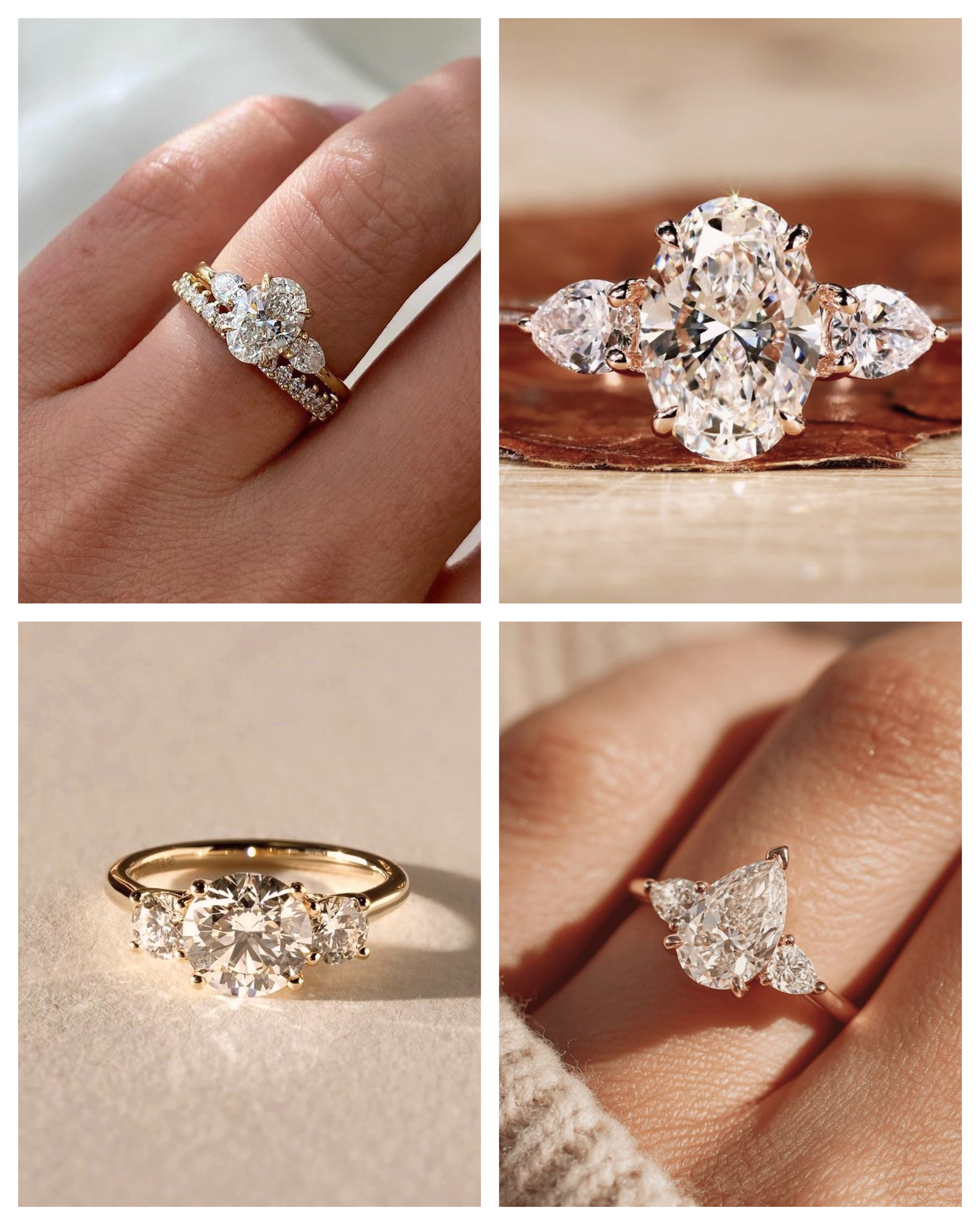 The symbolic "past, present, and future" ring gets a contemporary update with asymmetrical arrangements and unexpected cuts. Think emerald-cut side gems flanking an oval center, or the use of kite-shaped side diamonds for a sharper, modern edge.