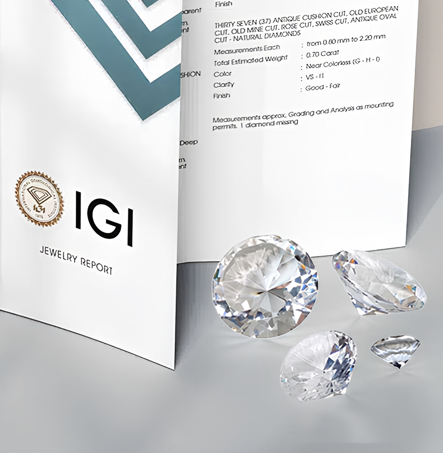 For precious stones, such as diamonds, sapphires or rubies, we attach certificates of authenticity issued by recognized international gemological institutes, including GIA or IGI, as well as expert certificates. These documents confirm the origin, quality and parameters of the stones, including their weight, color, clarity and cut. Thanks to this, our clients have full certainty about the authenticity and value of the purchased jewelry.